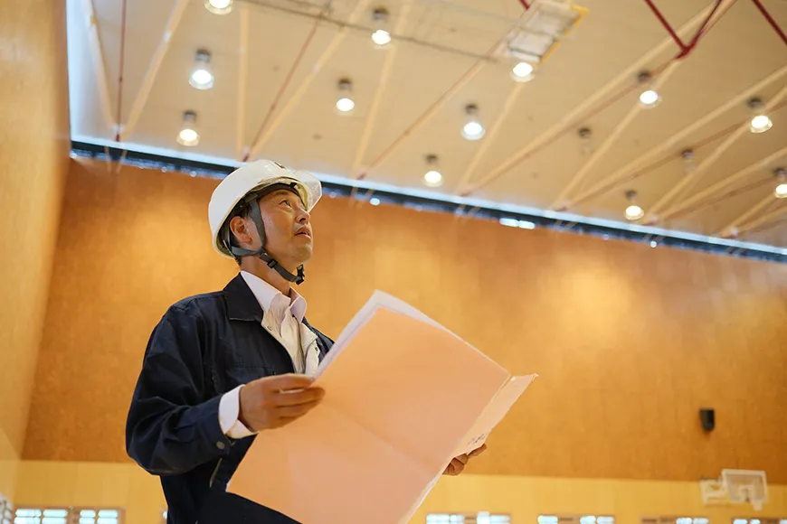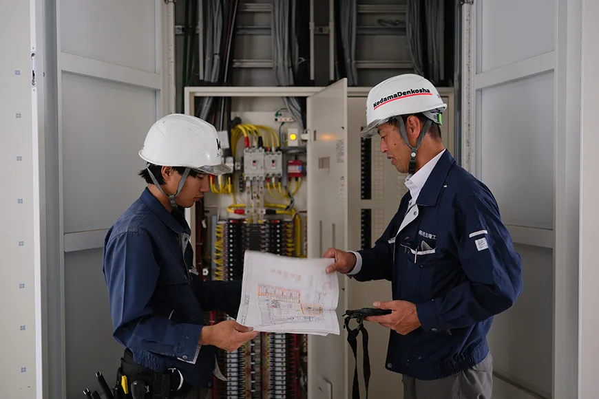 施設全体の電気/空調/換気設備を整えていくのが仕事です。電工職として培ってきた豊富な知識と技術を活かしながら、現場の作業員への指示や管理も担います。児玉では、電工職として最低でも10年以上の経験が必要であると考えています。